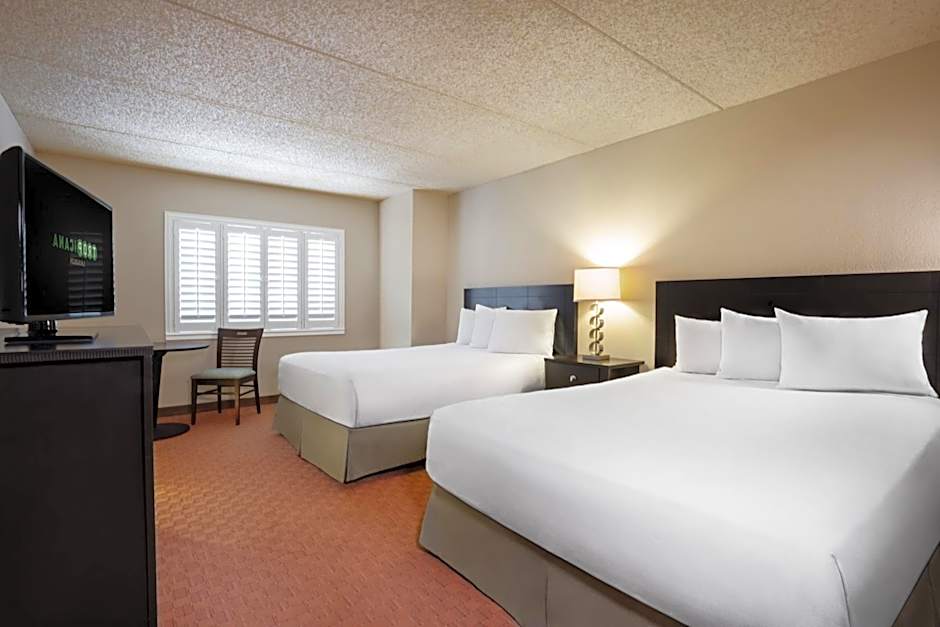 A flat-screen television and views of the Laughlin Strip (based upon availability) are featured in this room